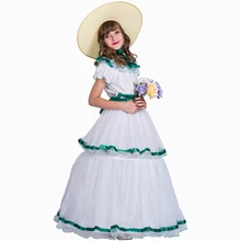 Buy Now Southern Belle Layer White Princess Costume Cosplay Dress With Hat Elegant Long Birthday Party Halloween Costume For Kids before expired and You will save 40% today